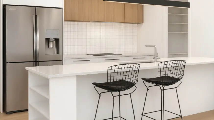 - Stone benchtop, Fisher & Paykel appliances with induction cooktop