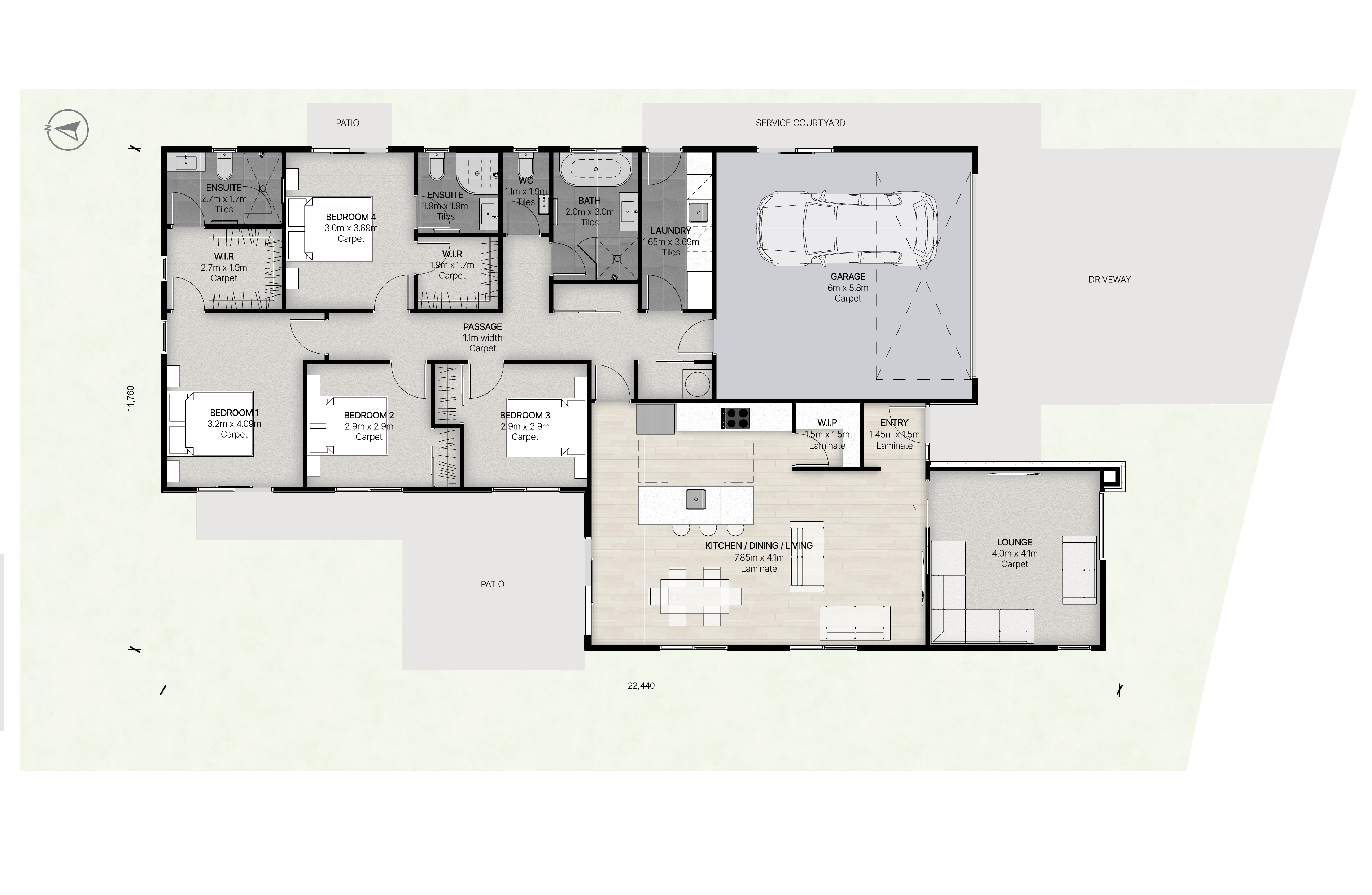 - 2.55m High ceilings with 2.2m Extra high interior doors