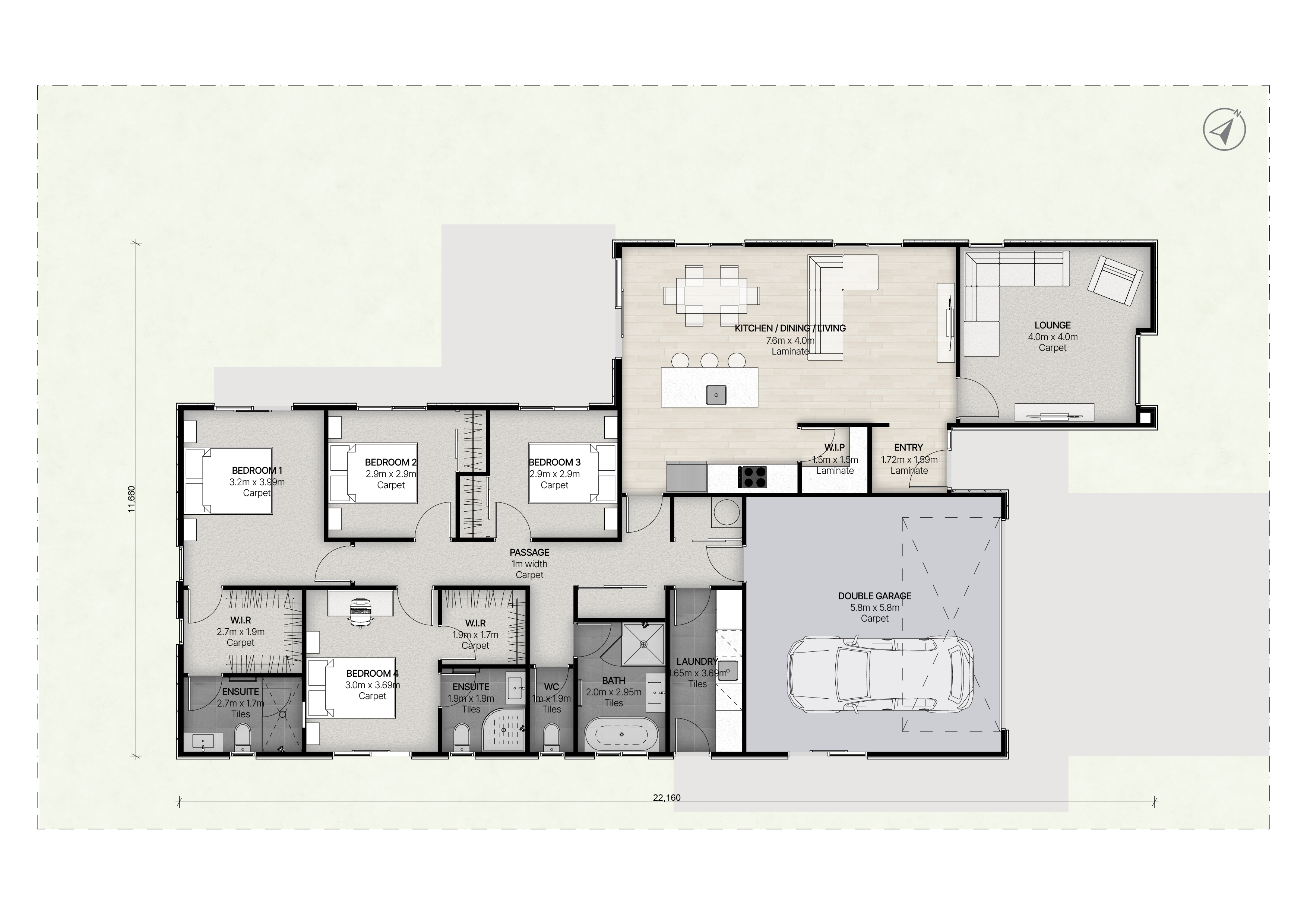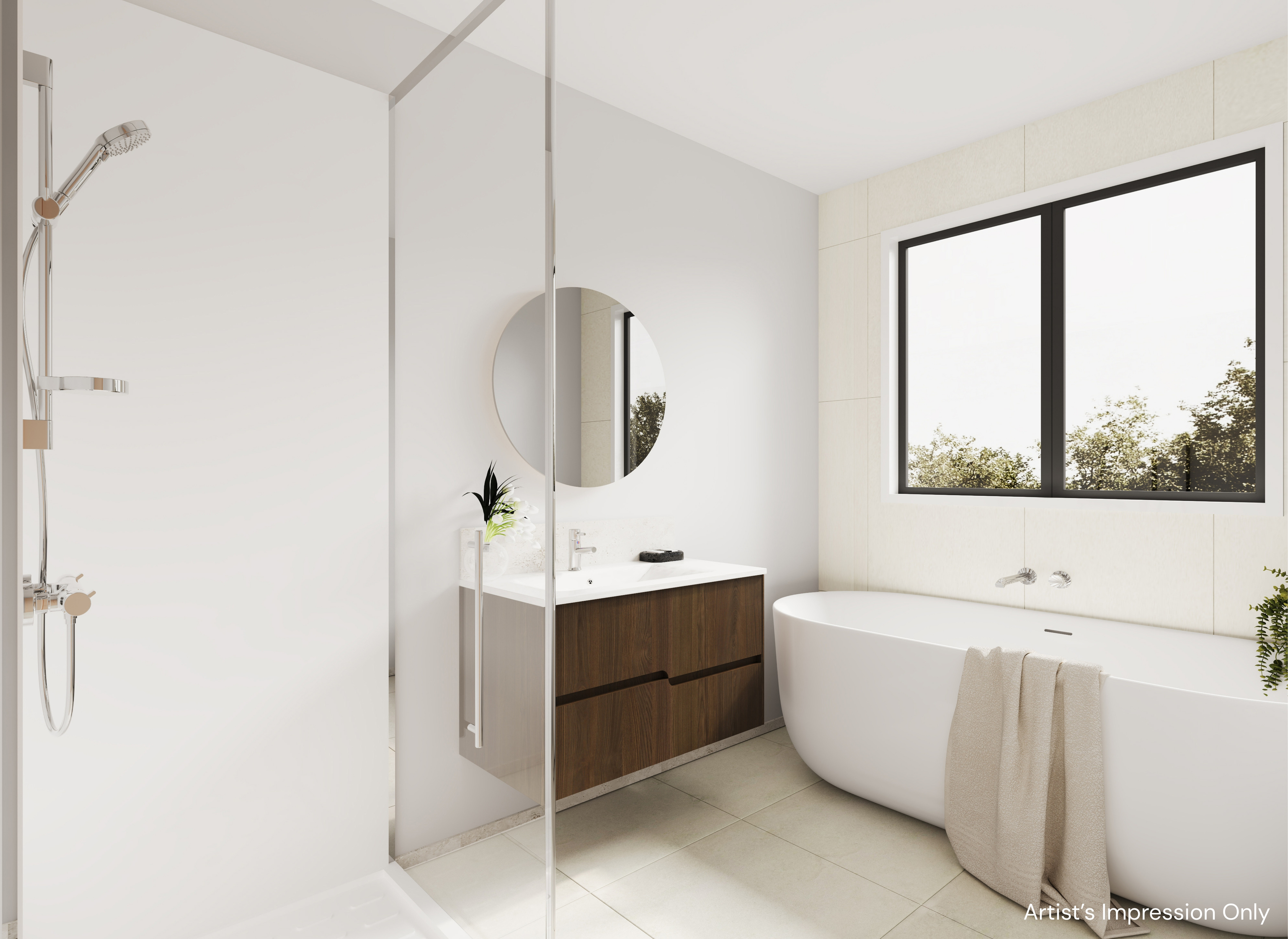 - Ensuite bathroom with tiled shower and niche