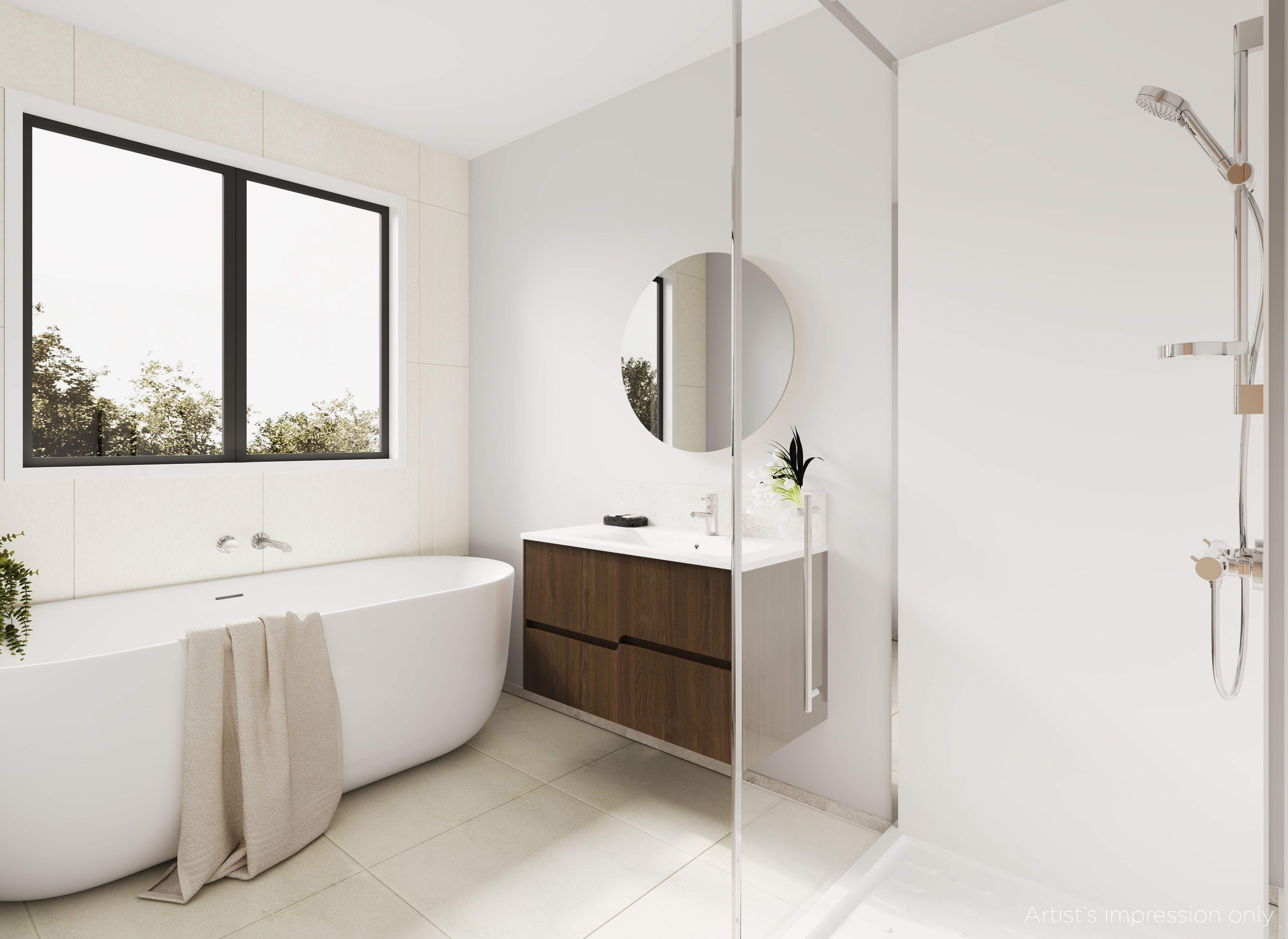 - Ensuite bathroom with tiled shower and niche