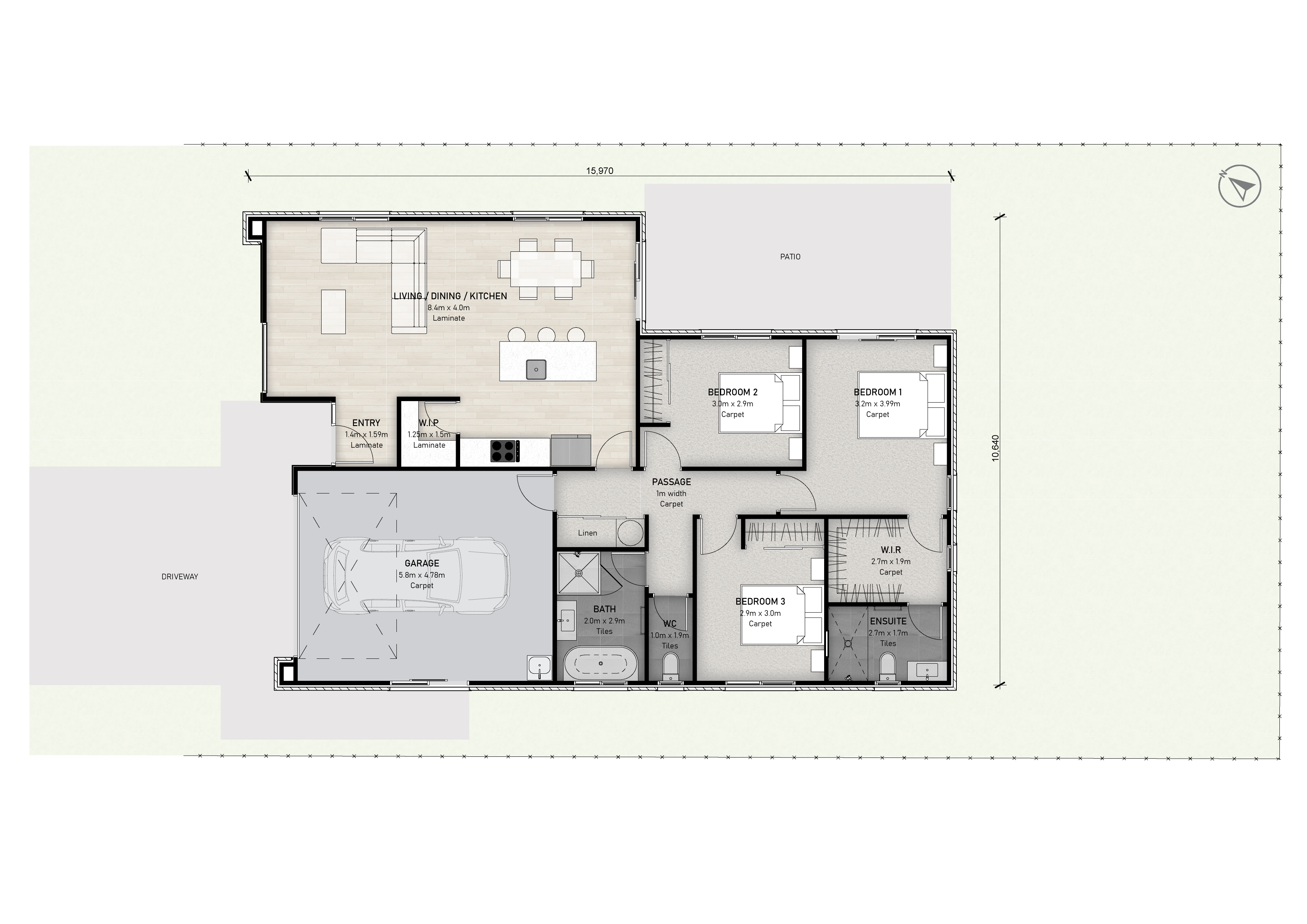 - Extra wide single garage