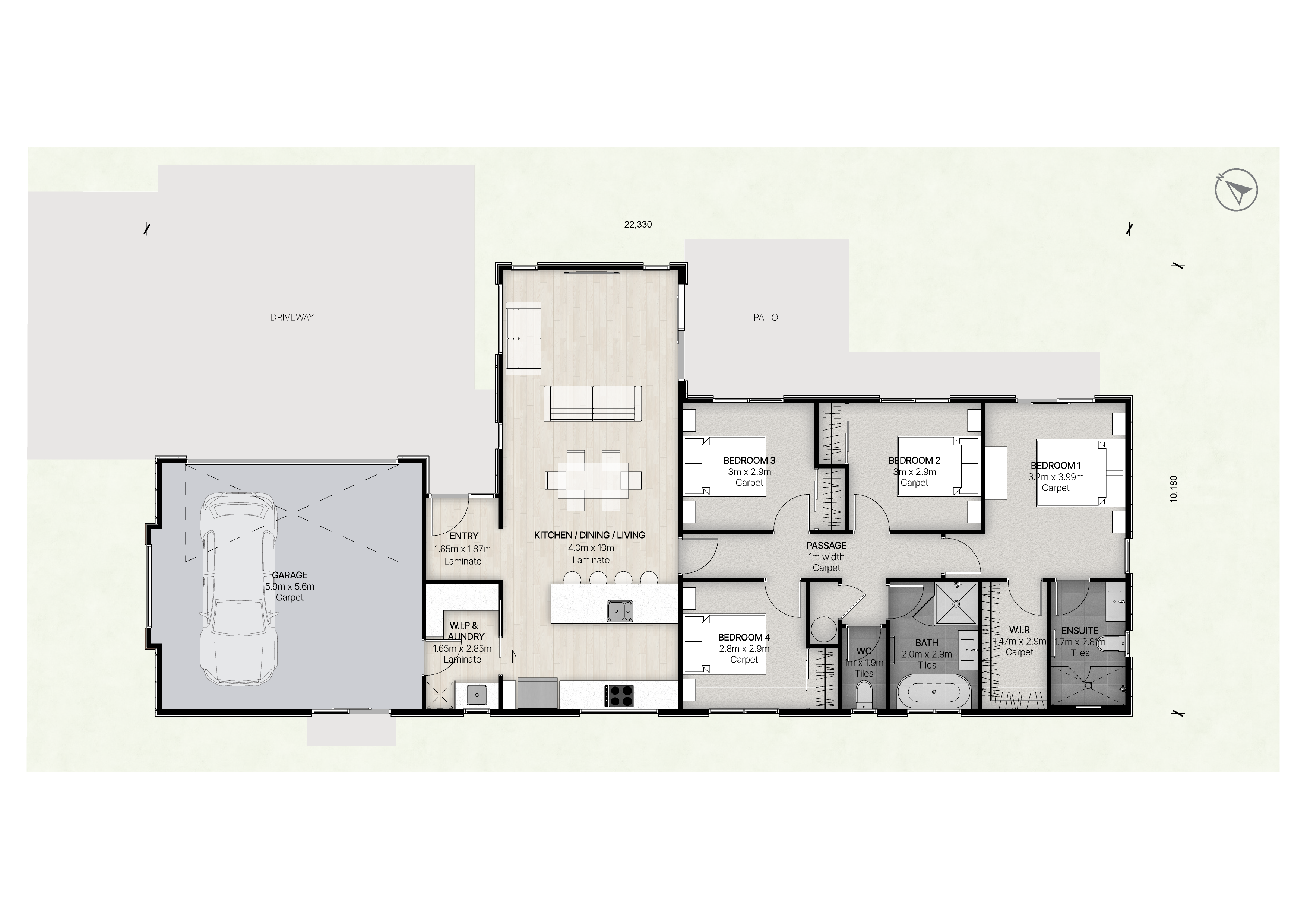 - Stone benchtop, Fisher & Paykel appliances with induction cooktop