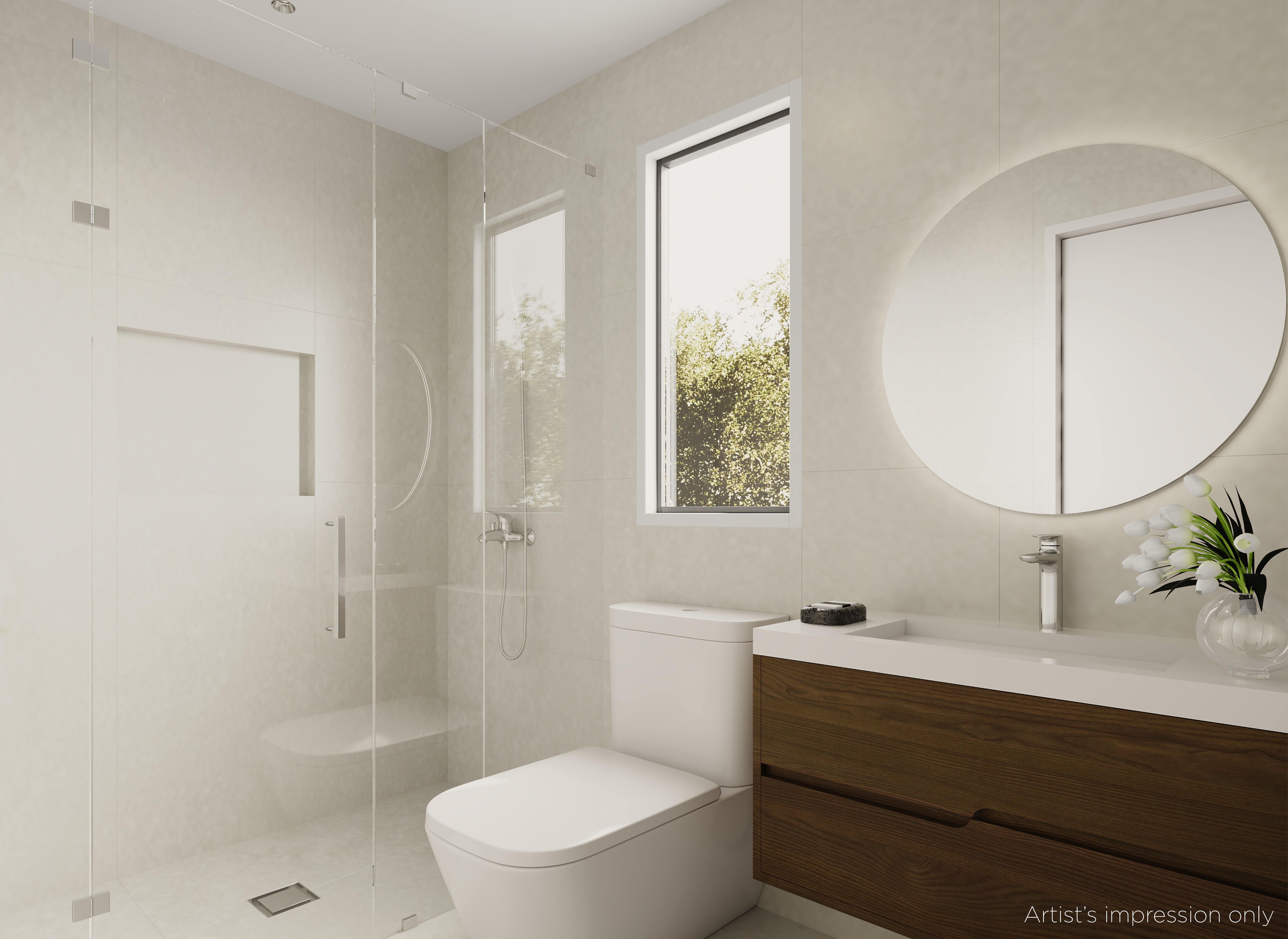 - Ensuite bathroom with tiled shower and niche