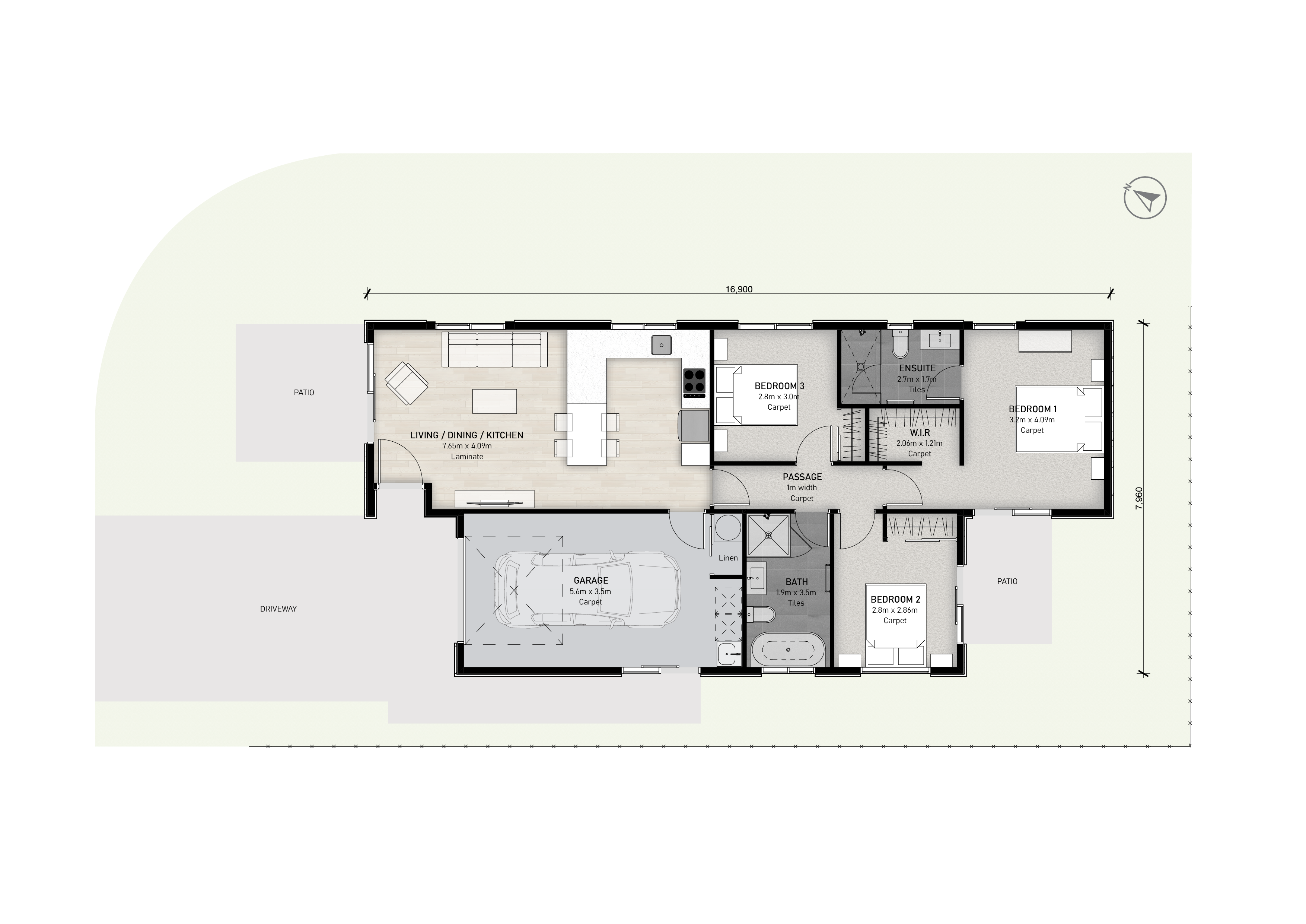 - R3.6 wall insulation, R7.0 ceiling insulation