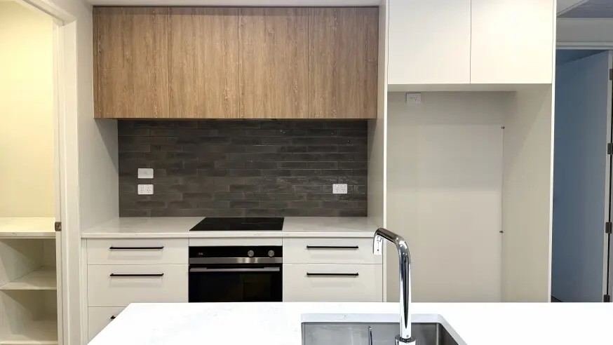 - Stone benchtop, Fisher & Paykel appliances with induction cooktop